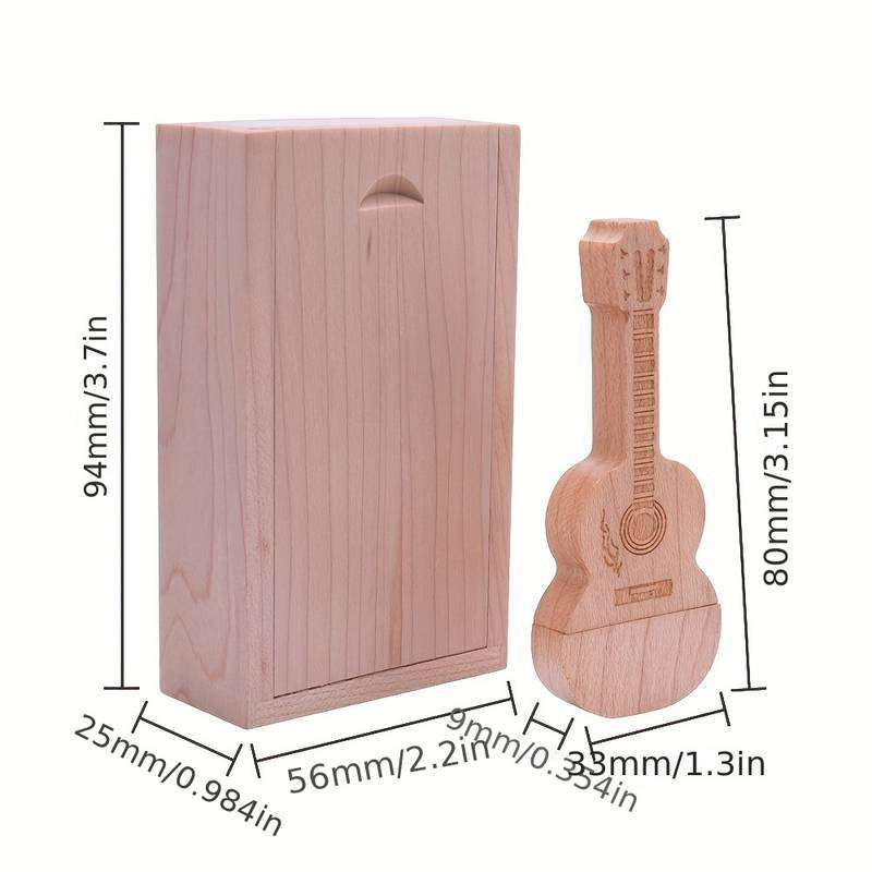 Unitate flash USB 2.0 din chitara de lemn, cu ambalaj din cutie de lemn.