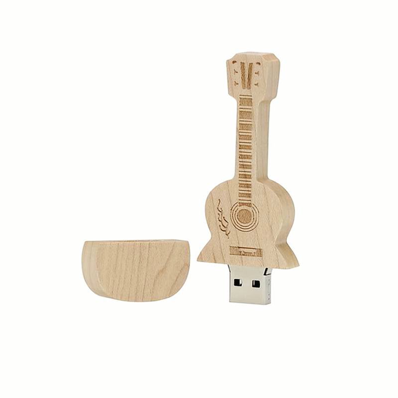 Unitate flash USB 2.0 din chitara de lemn, cu ambalaj din cutie de lemn.